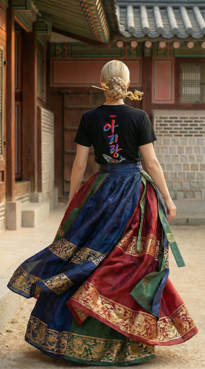 Essa camiseta nasce inspirada no Dancheong, a pintura tradicional que cobre os tetos dos palácios coreanos, onde cada cor protege, conta histórias e atravessa gerações.